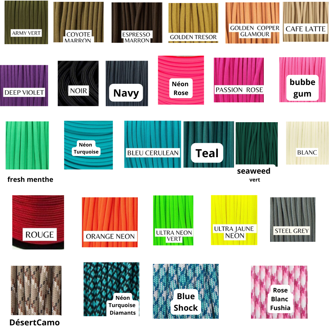 - Choisissez ensuite votre couleur de paracorde extérieure